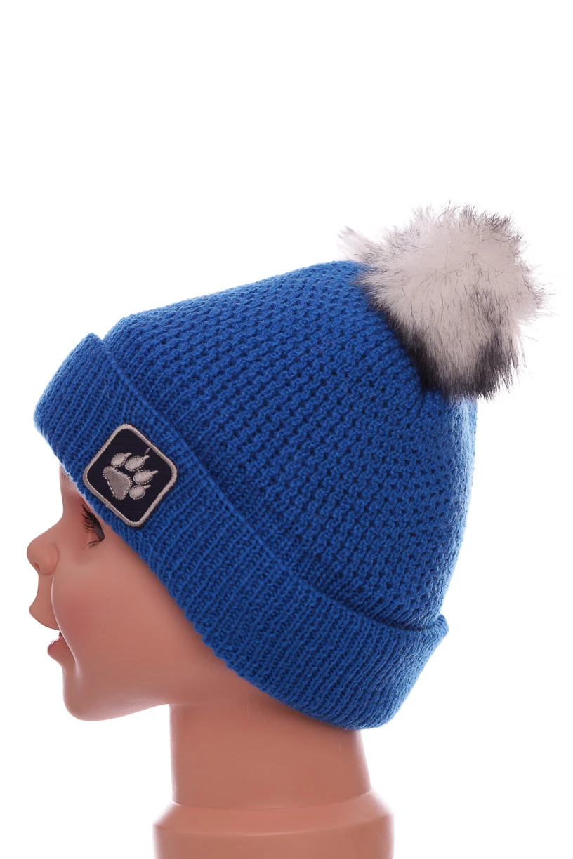 Шапка для хлопчика подвійна в'язка на флісі Лапка синя
