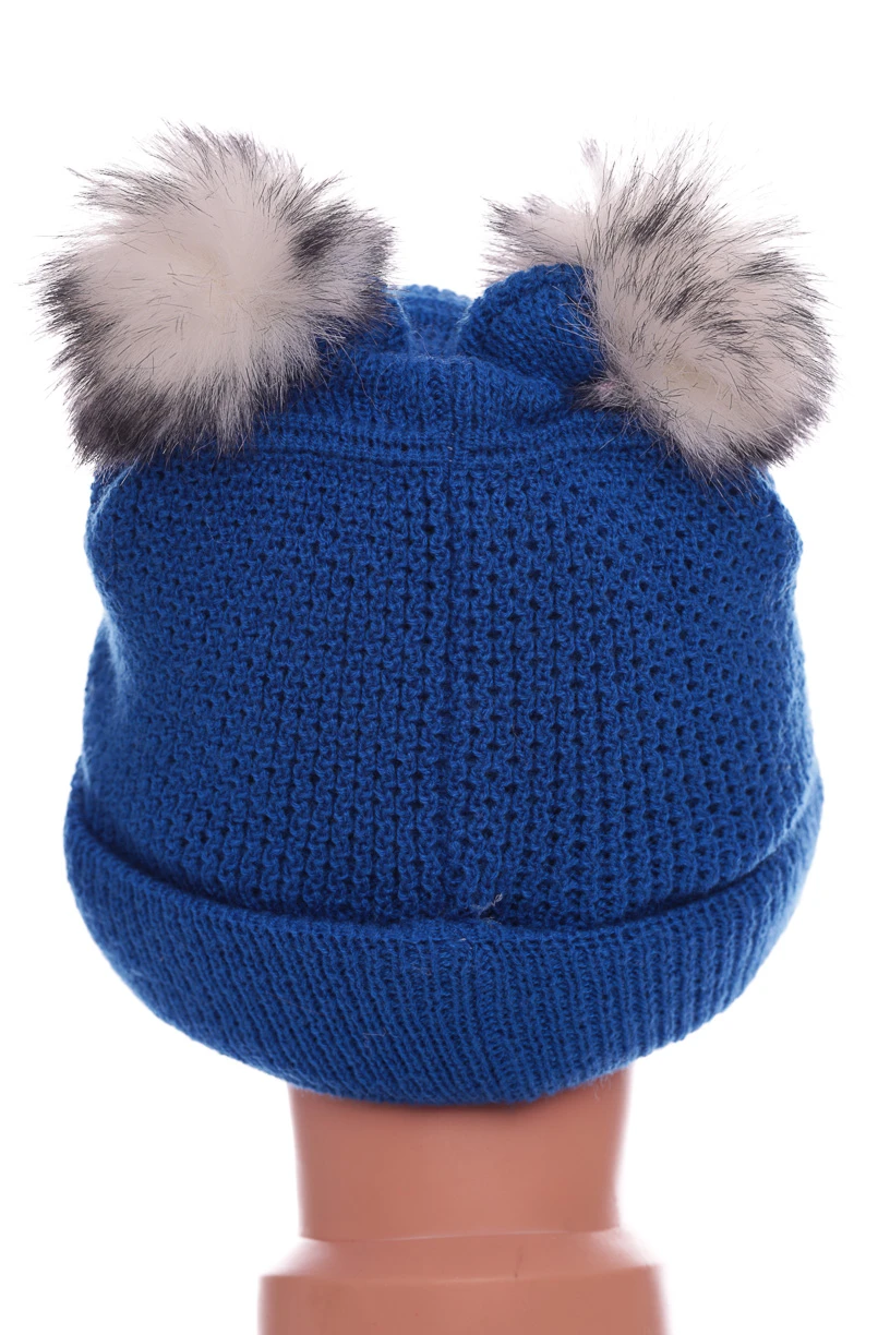 Зимова дитяча шапочка в'язка на флісовій підкладці. Шапка з бубонами та відворотом
