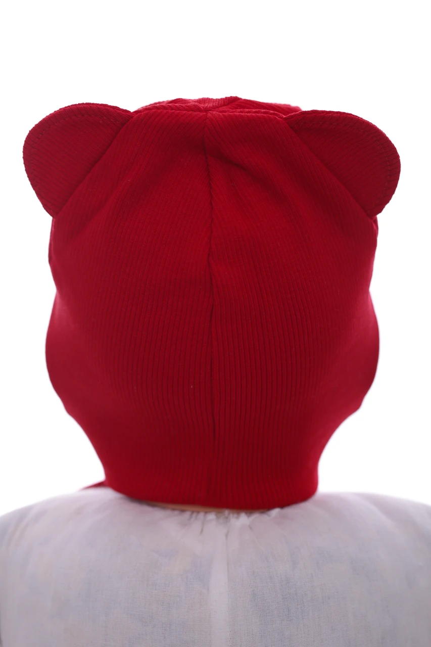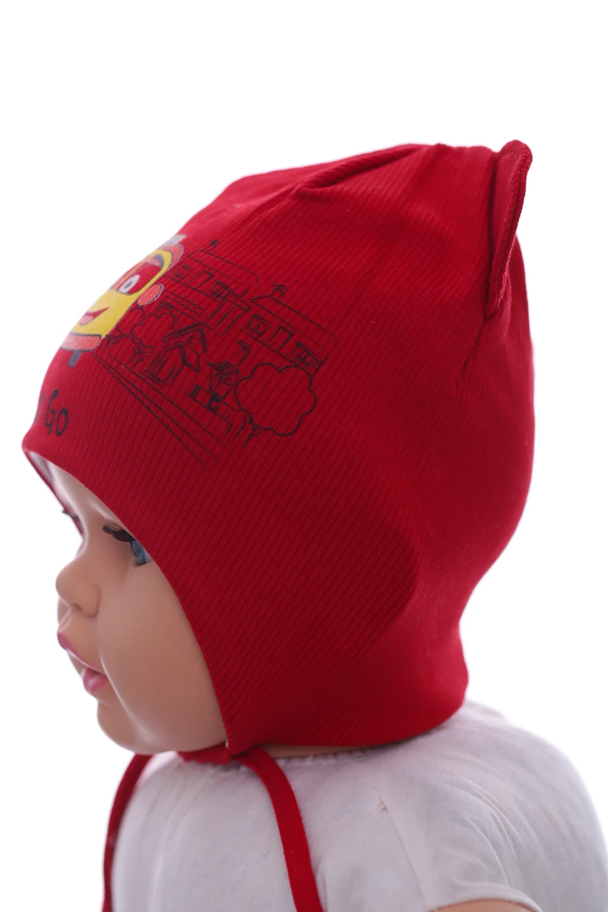 - Шапка для хлопчика подвійний трикотаж у рубчик Автобус червона