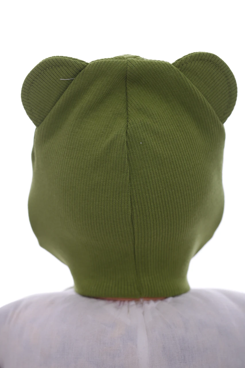 - Шапка для хлопчика подвійний трикотаж у рубчик Автобус зелений