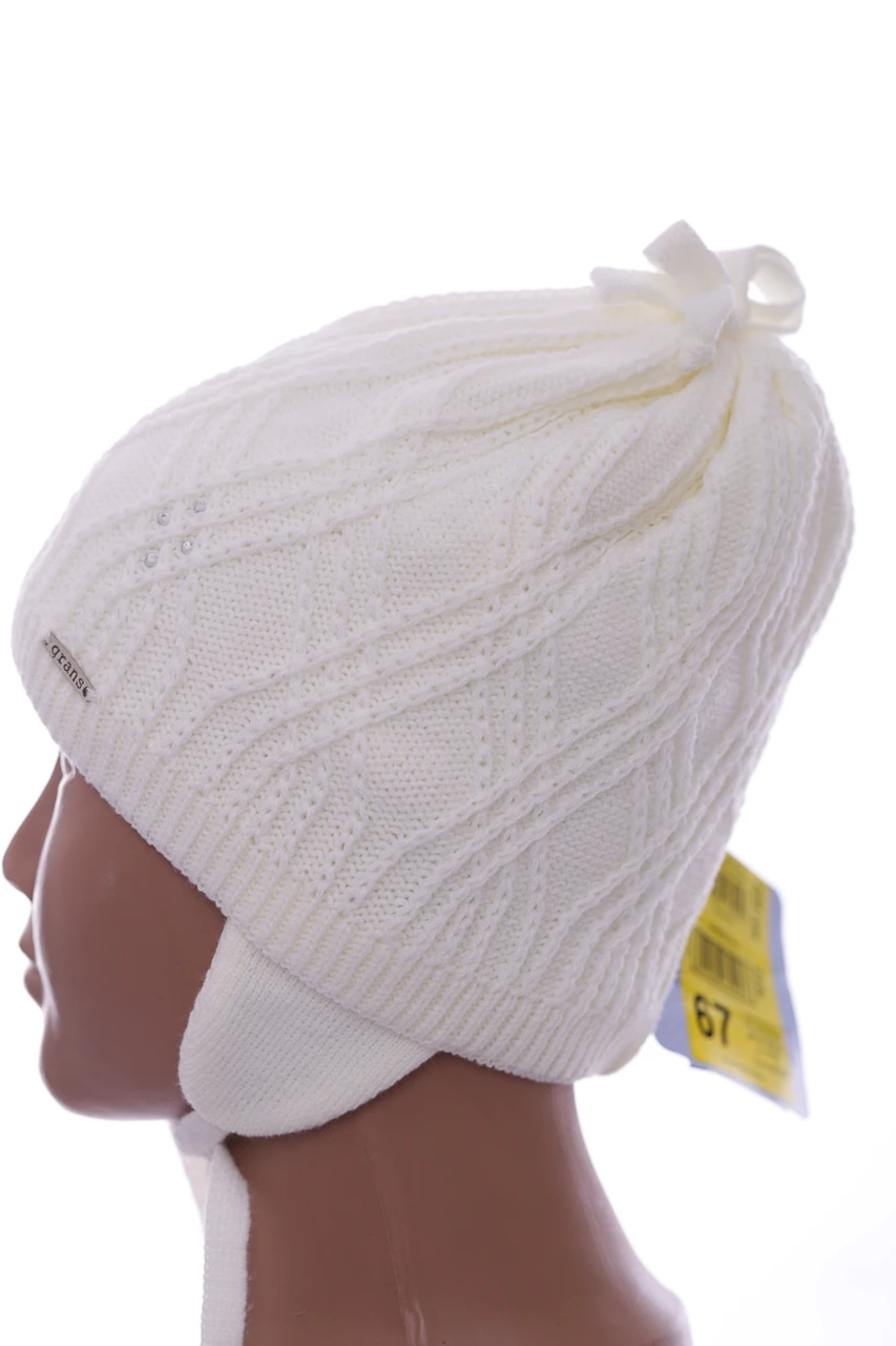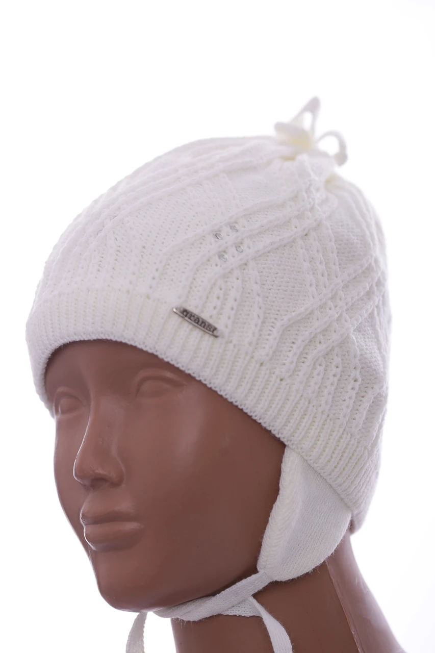 - Шапка в'язка для дівчинки на трикотажі Стразик молочний