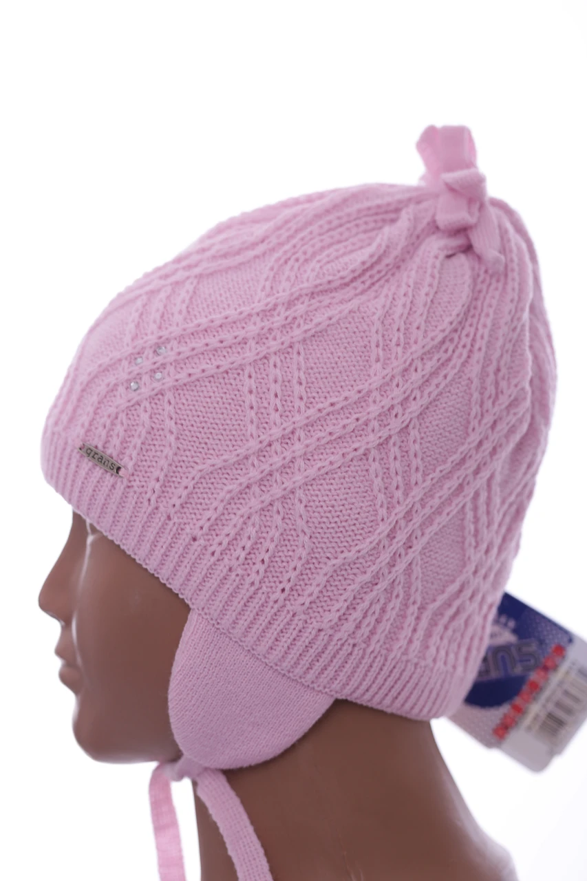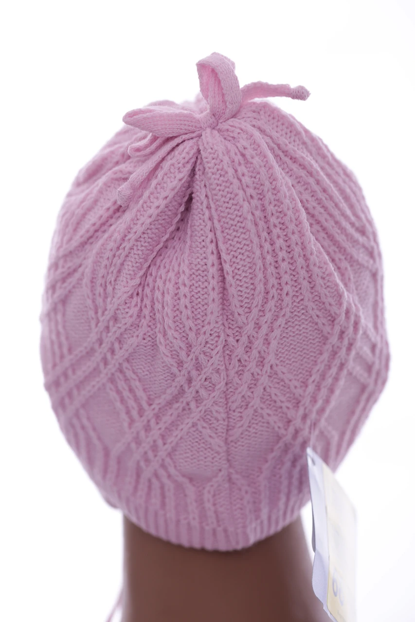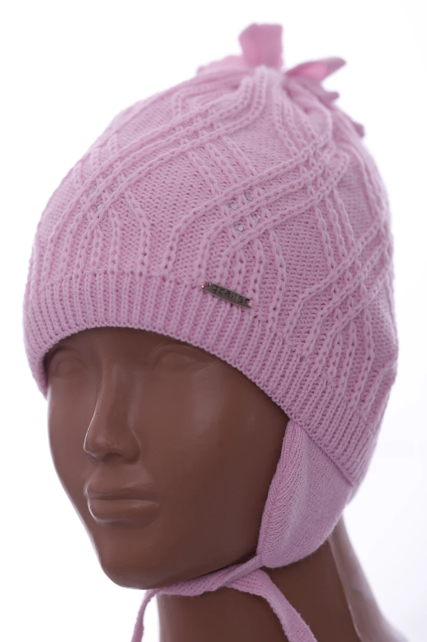 - Шапка в'язка для дівчинки на трикотажі Стразик світло-рожевий