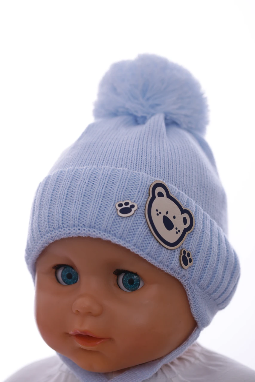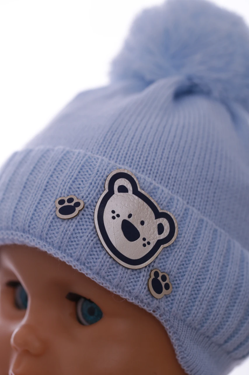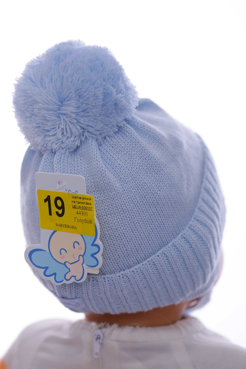- Шапка в'язка для хлопчика на трикотажі Миха блакитна