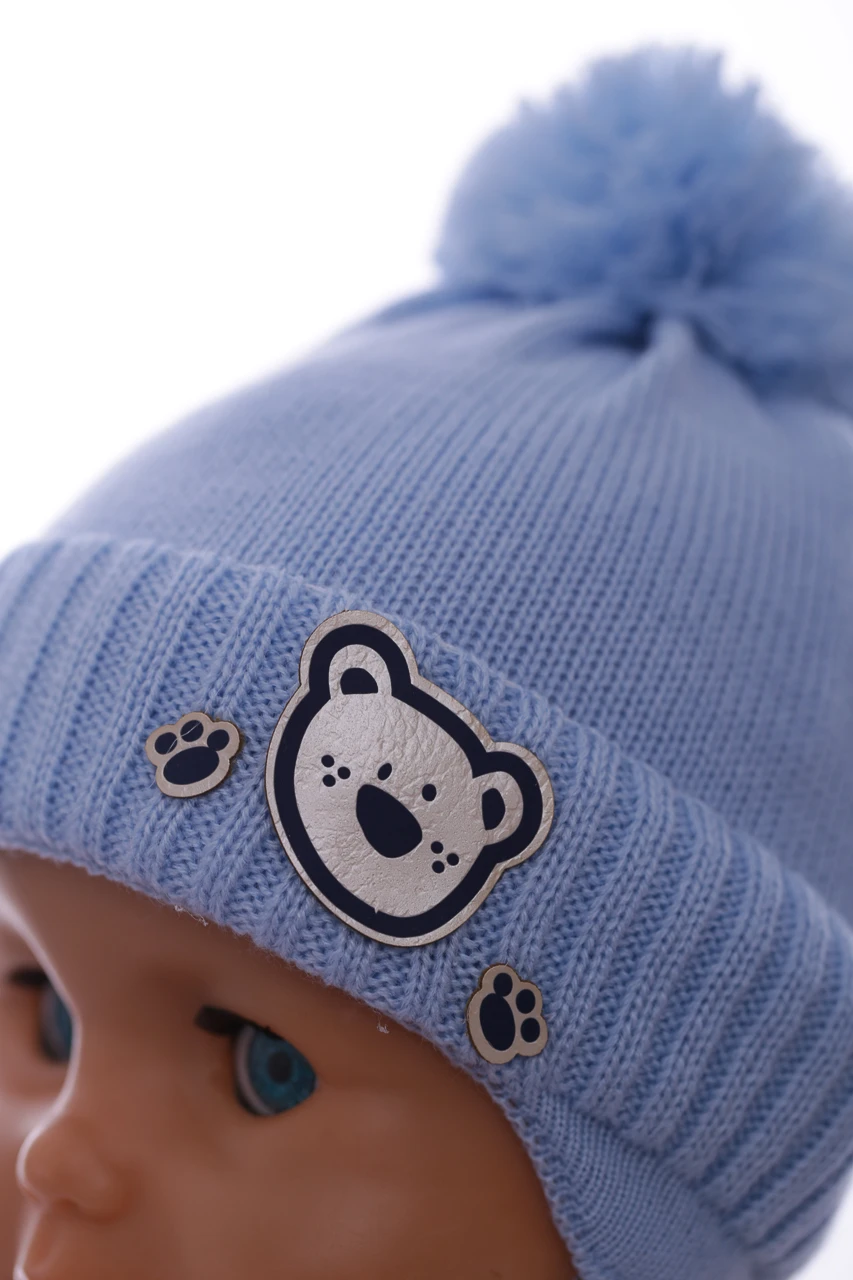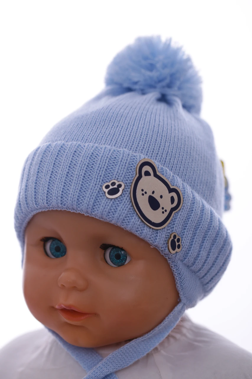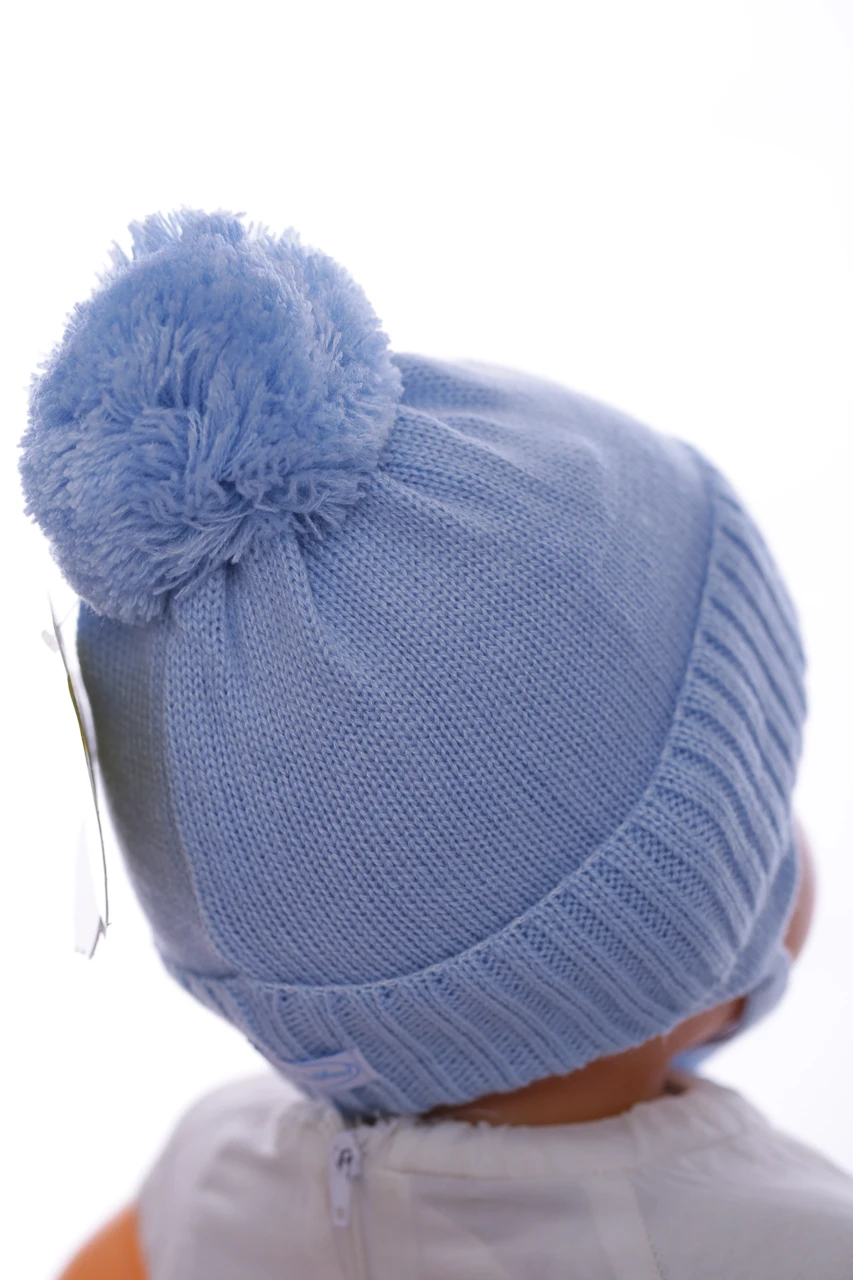 - Шапка в'язка для хлопчика на трикотажі Миха блакитна