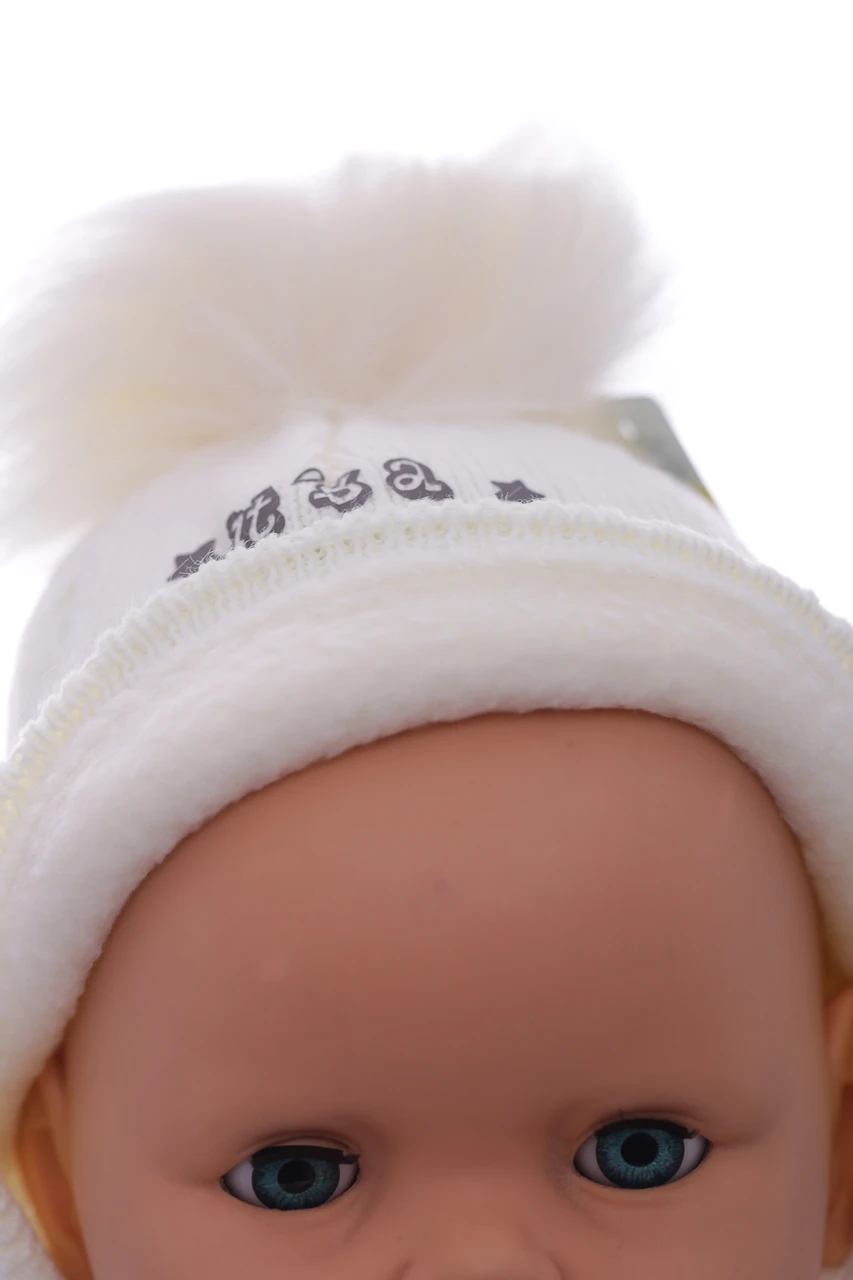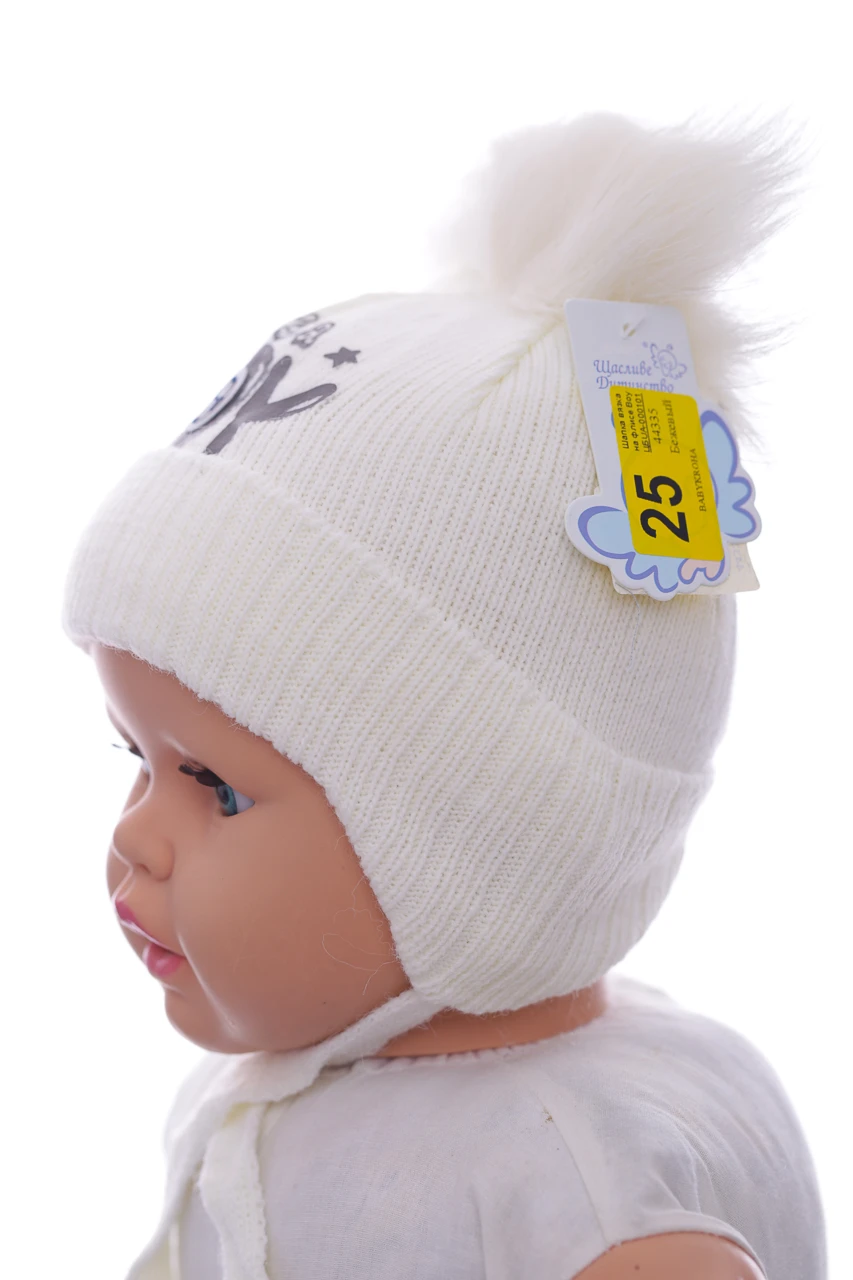 - Шапка в'язка на флісі для хлопчика Boy молочна