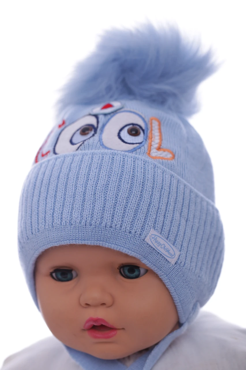 - Шапка в'язка на флісі для хлопчика Очі блакитна