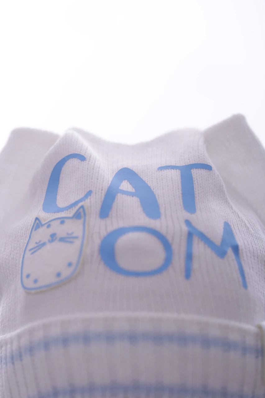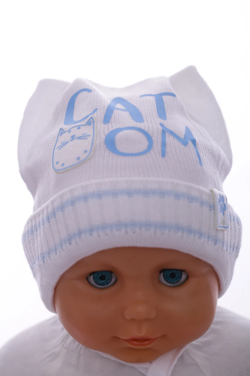 - Шапка в'язка на трикотажі Котик блакитна