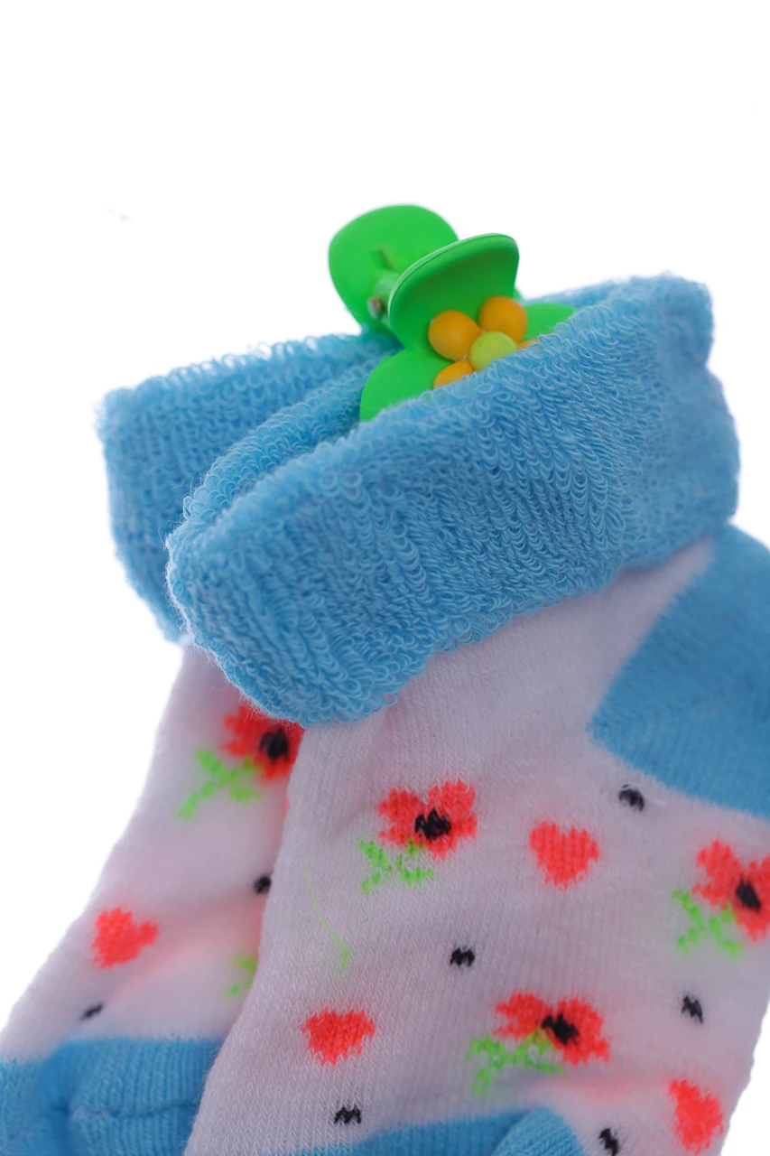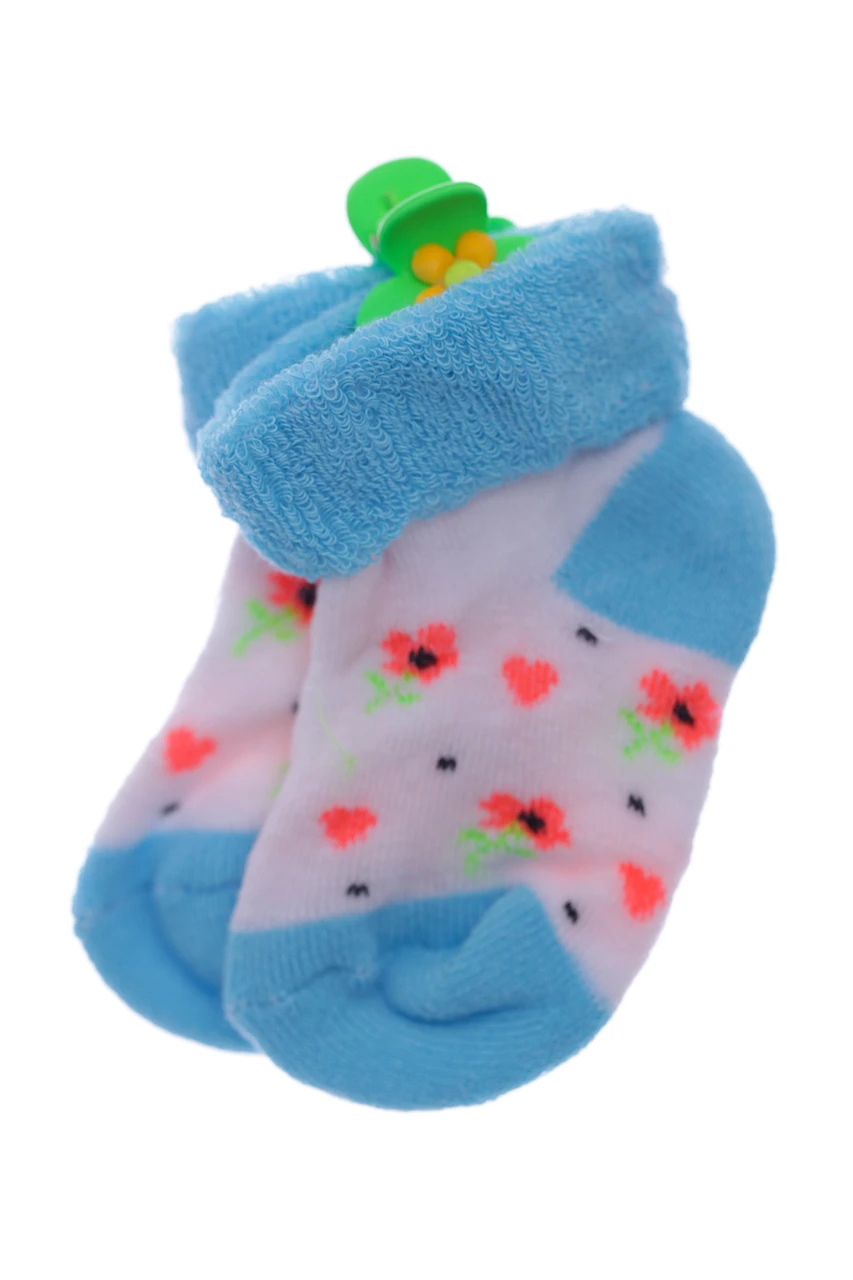 - Шкарпетки на махрі для дівчинки з відворотом Квіти бірюзові