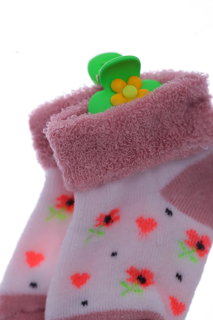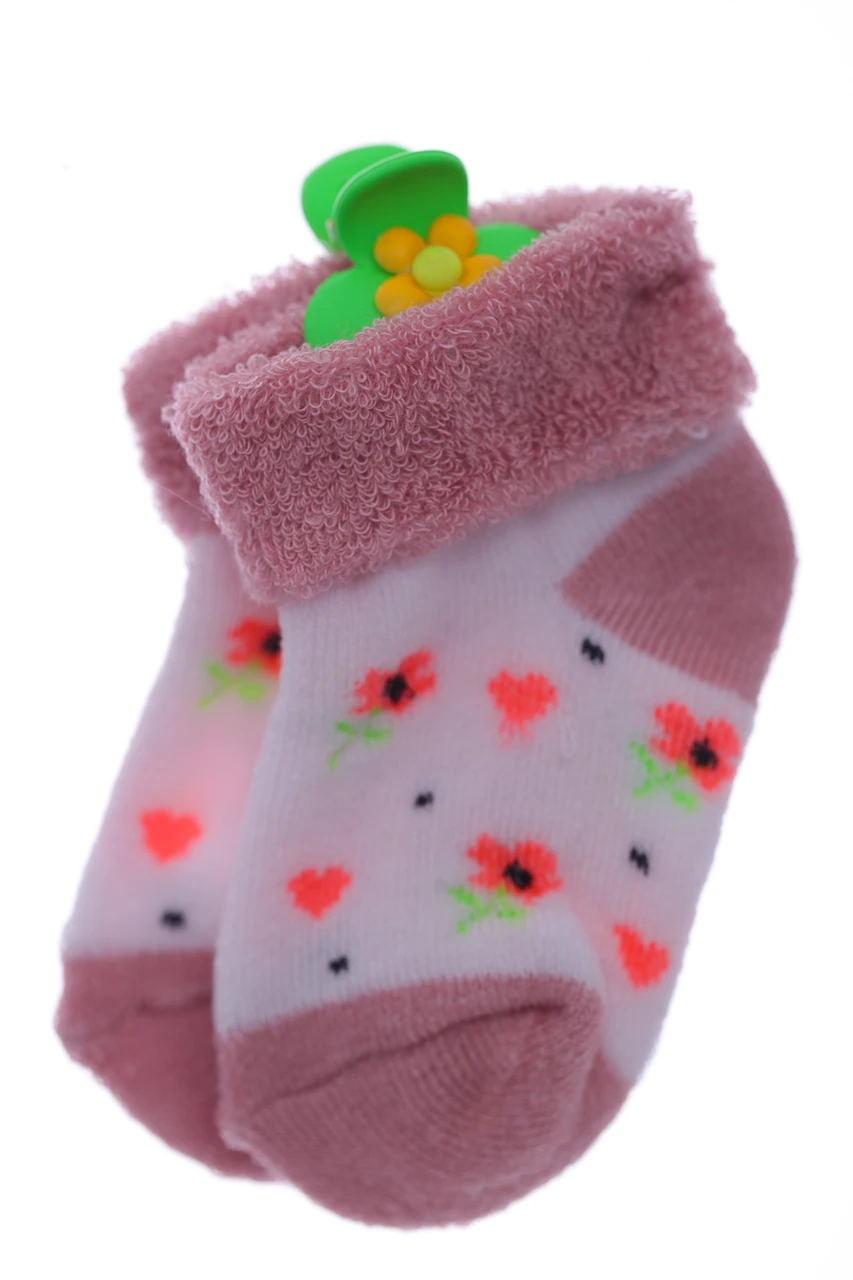 - Шкарпетки на махрі для дівчинки з відворотом Квіти пудрові