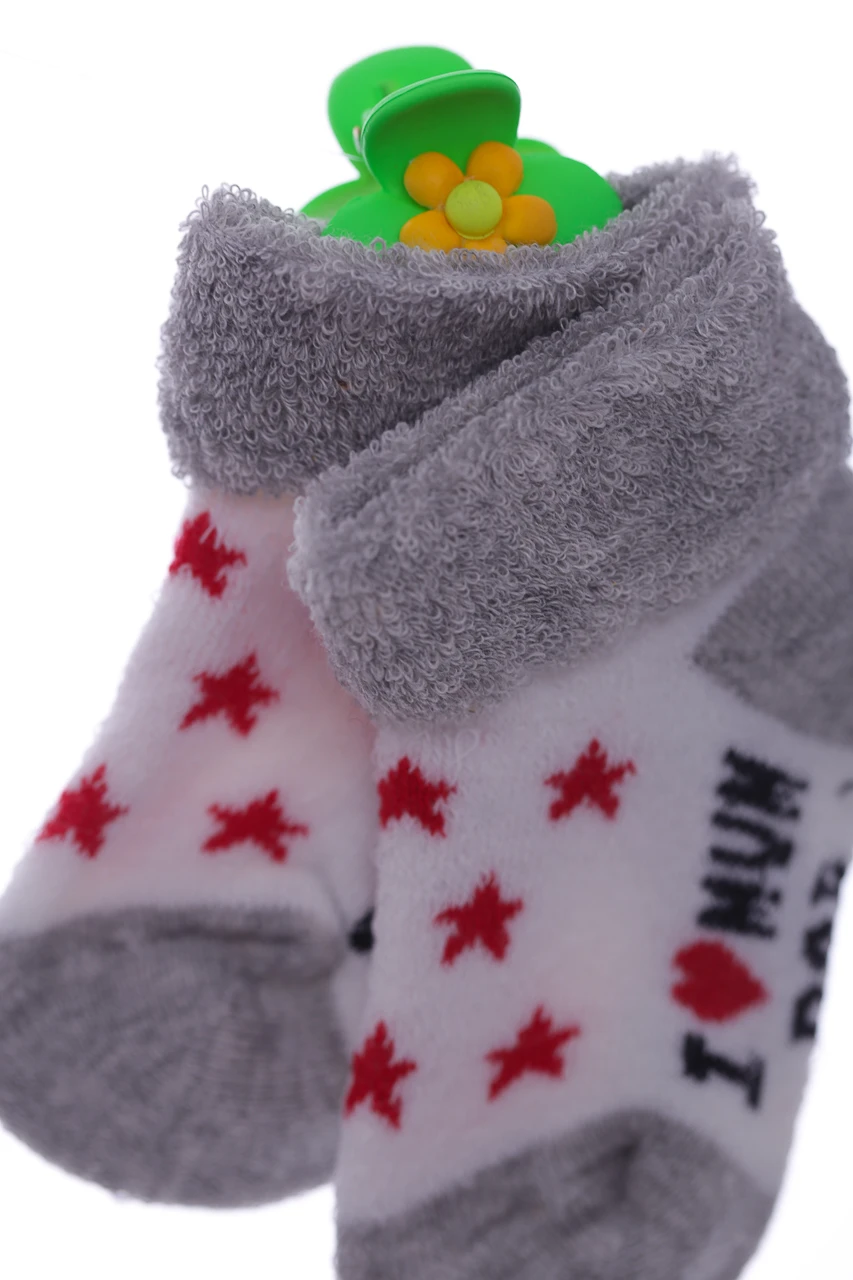 - Шкарпетки на махрі для хлопчика з відворотом Зірочки сірі