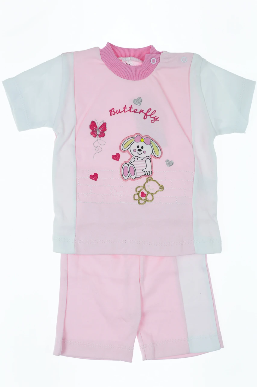 - Шорти з футболкою для дівчинки трикотажні зайчик рожевий