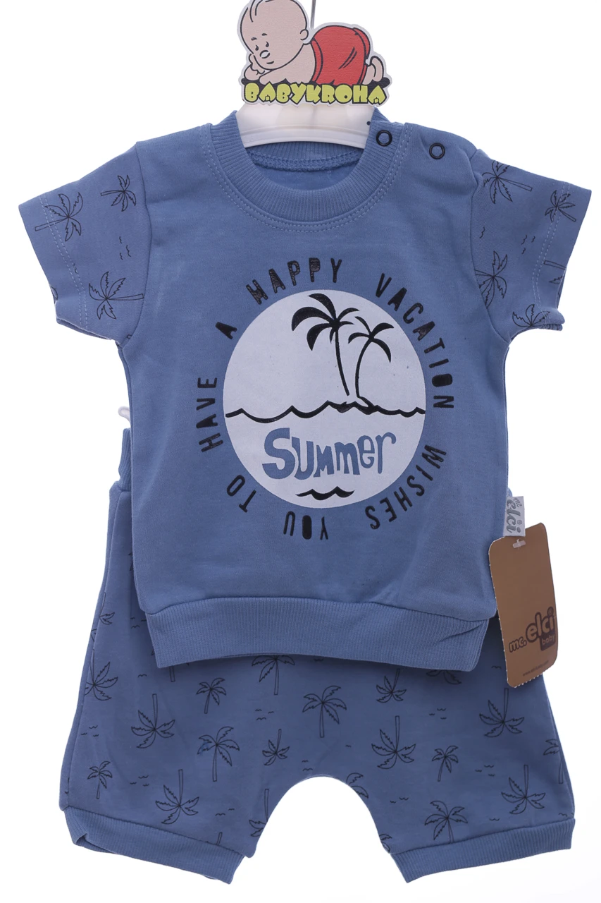 Трикотажний літній набір для хлопчика. Складається із шортів на гумці та футболки на кнопочках. Підійде щодня. Підлягає машинному пранню