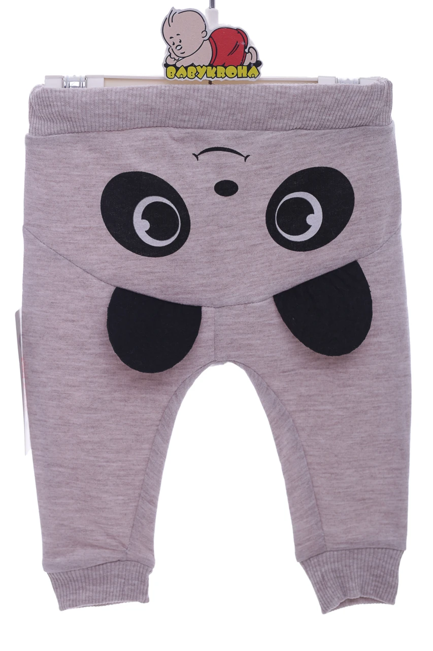 Трикотажні штани для малюка. Тканина тринитка, милий принт панди позаду. Низ штанів з манжетами, м'яка резиночка