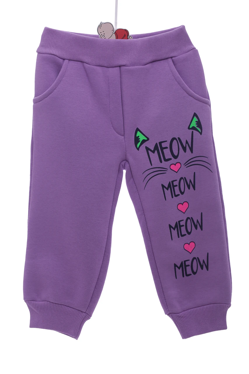 - Штани на флісі для дівчинки Meow фіолетові