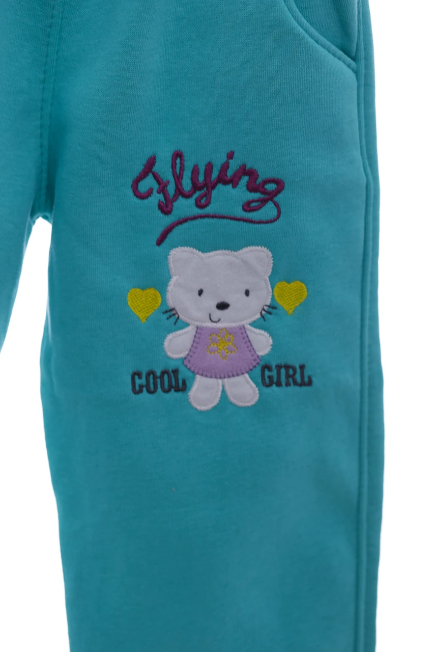 - Штани на флісі для дівчинки з кішечкою м'ятні