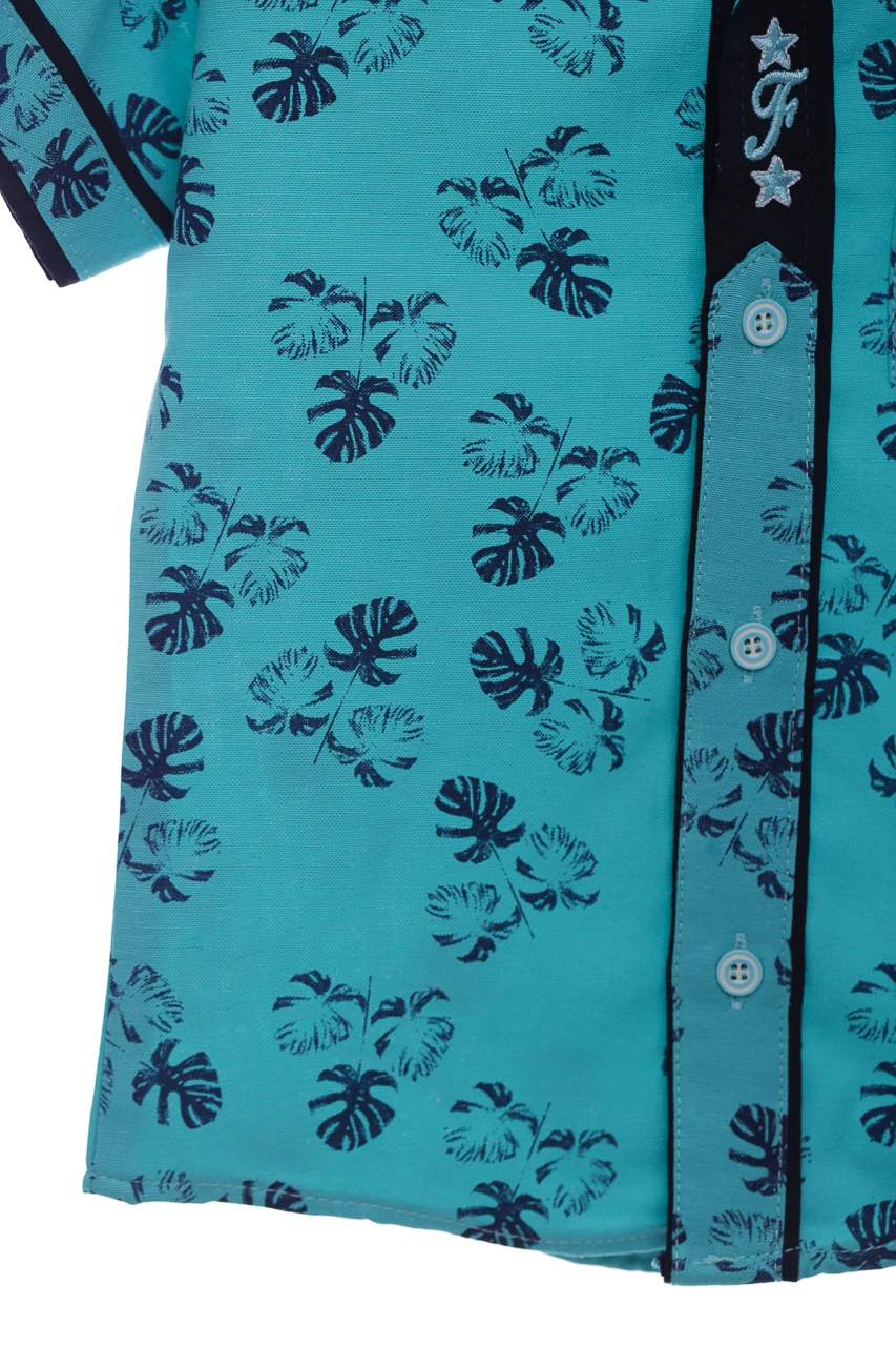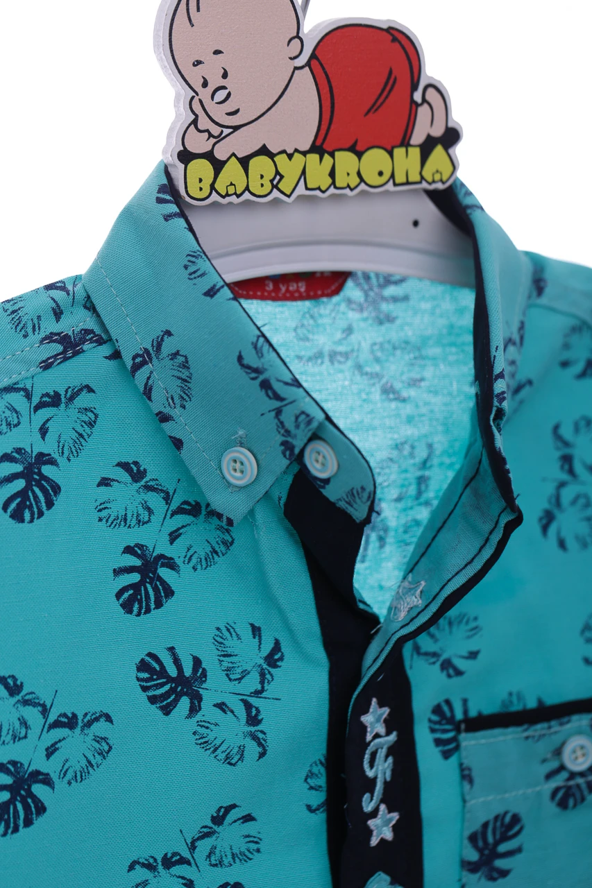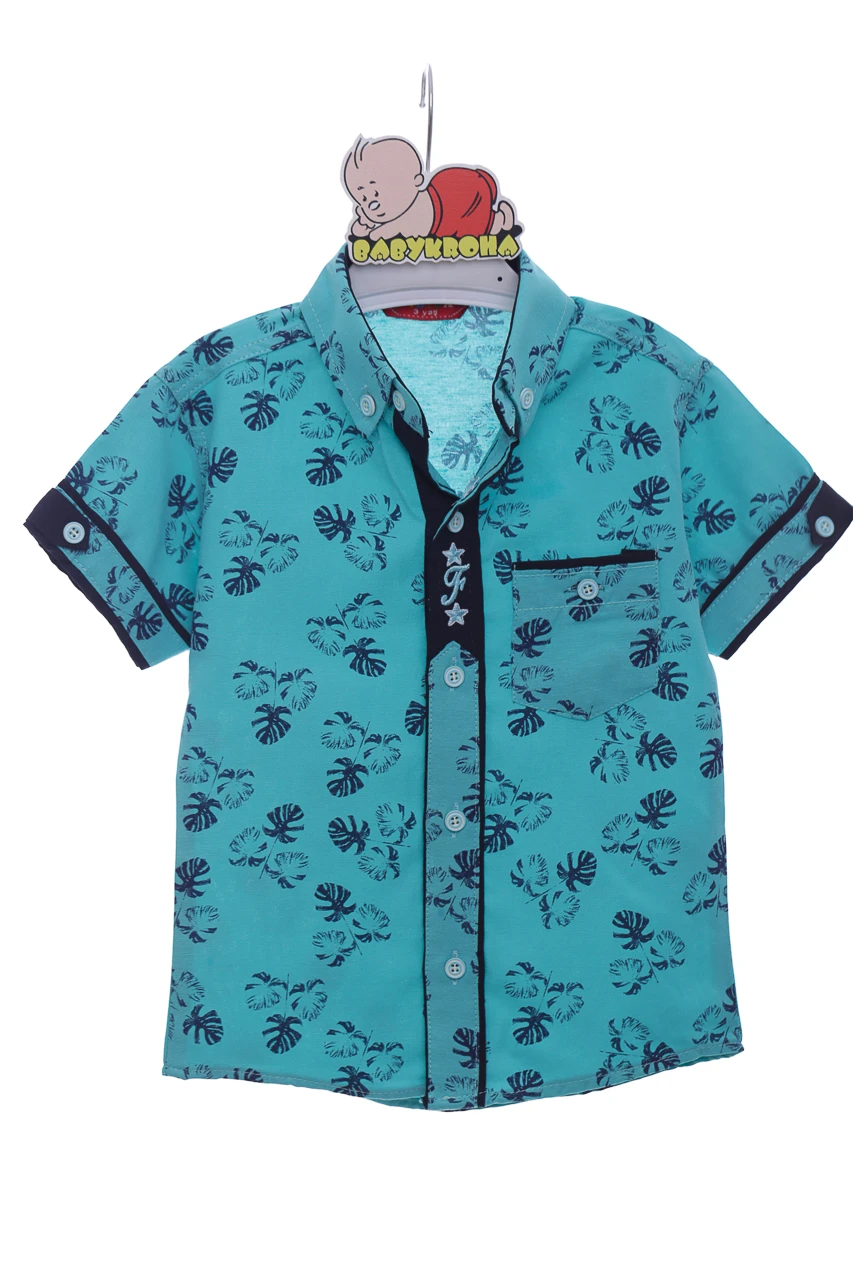- Сорочка з коротким рукавом для хлопчика бавовняна з бірюзовою листочками