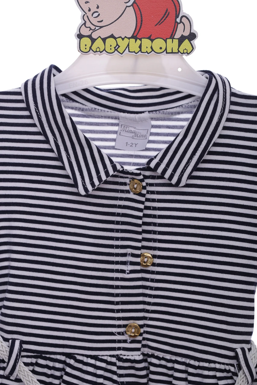 - Сукня з довгим рукавом з ремінцем Смуга синя