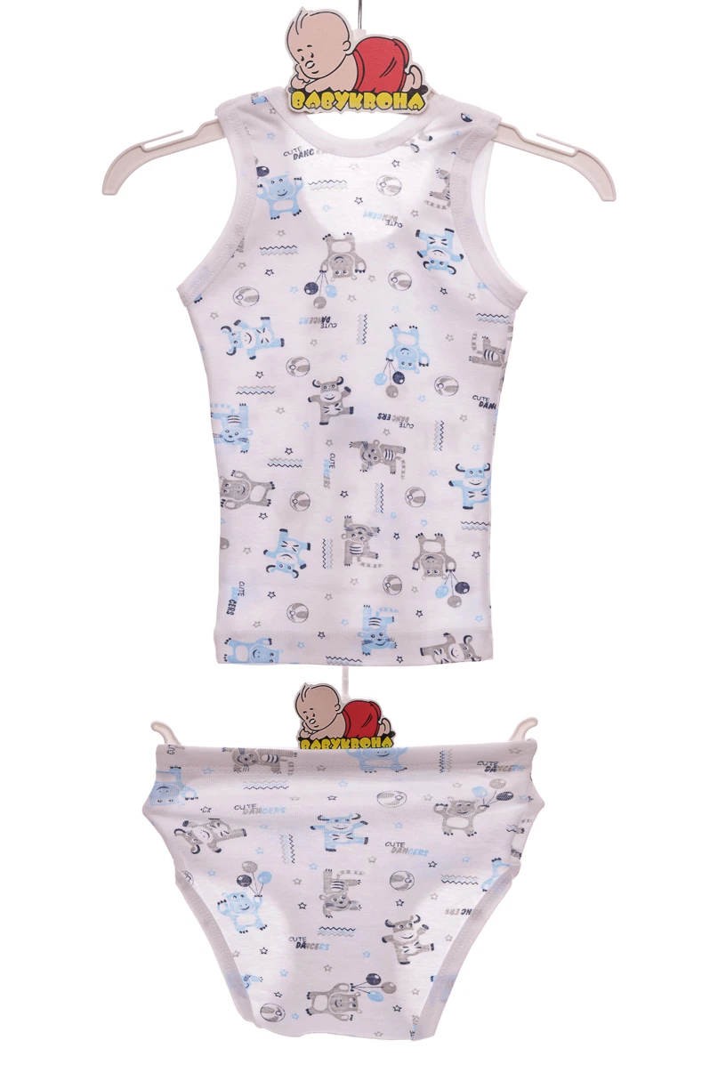 - Труси з майкою для хлопчика трикотажні блакитні зоопарк