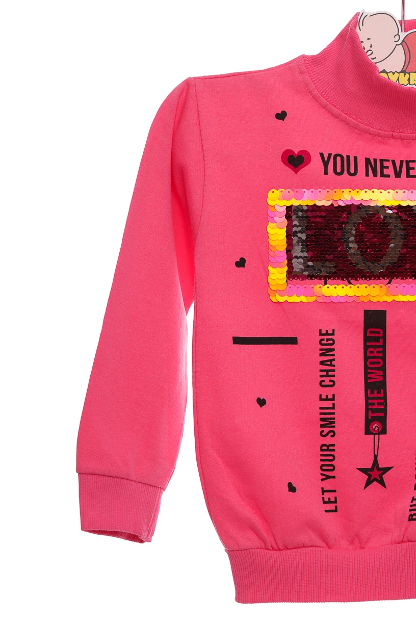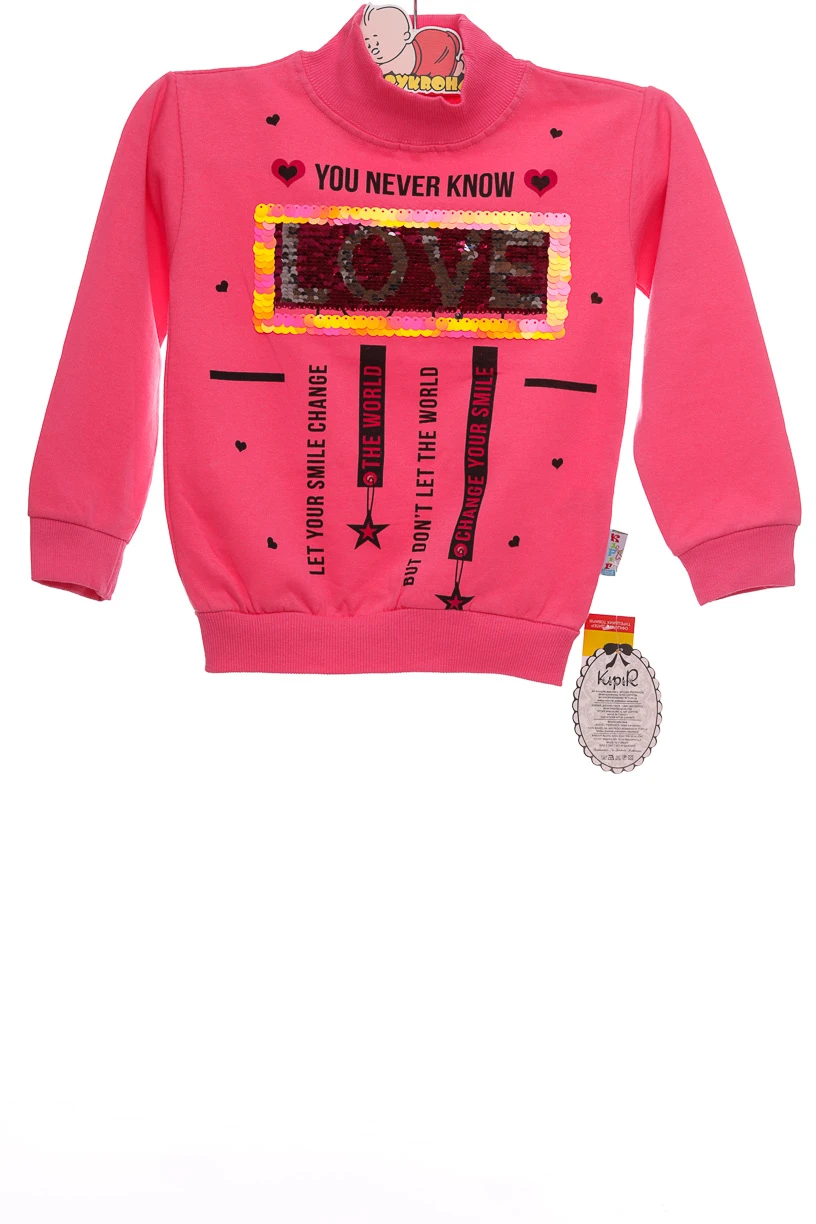 - Водолазка на флісі для дівчинки трикотажна Love рожева