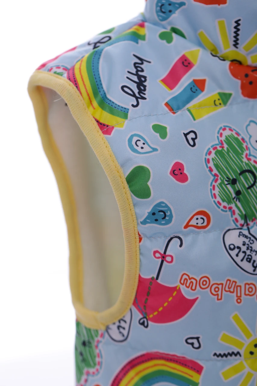 Жилетка для дівчинки. Модель із яскравим принтом на м'якому флісі. Верх жилетки з плащової тканини з водовідштовхувальним просоченням. Чудово підійде на весну-осінь. Розрахована на температуру від +15 до +5, все залежить від активності дитини.