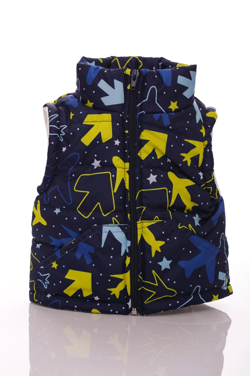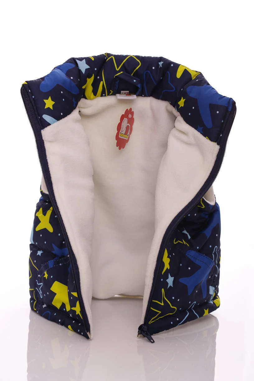 - Жилетка на флісі для хлопчика з кишенями Babykroha з принтом літачки синя